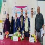 الدكتورة ندى المحرمي تعبر عن سعادتها بالبحث العلمي للطالبة سامية جازم أقيمت بكلية صبر للعلوم والتربية جامعة لحج المناقشة العلنية لرسالة الماجستير الموسومة بمدى تطبيق معاي...