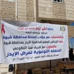 شبوة... البرنامج الوطني يدشن حملة توعوية لمخاطر مرض نقص المناعة "الإيدز" برعاية محافظ شبوة الشيخ عوض بن محمد بن الوزير، نفذ البرنامج الوطني لمكافحة الإيدز بمحافظة شبوه "...