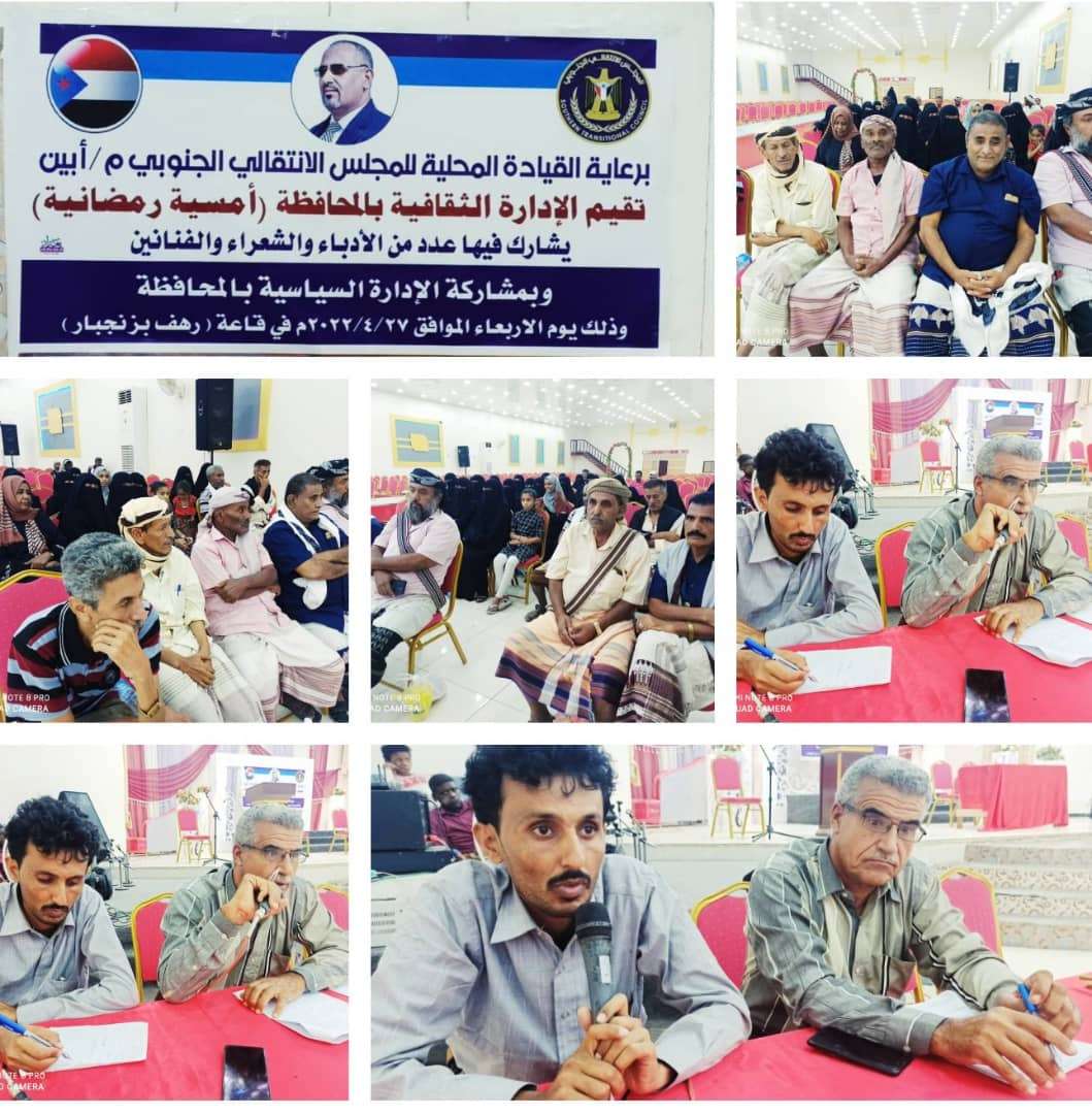 ثقافية انتقالي أبين تنظّم أمسية رمضانية بالمحافظة.