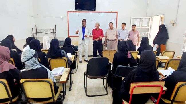 رئيس جامعة عدن ورئيس نقابة هيئة التدريس ومدير الشؤون التعليمية يتفقدون سير الدراسة في كلية اللغات والترجمة