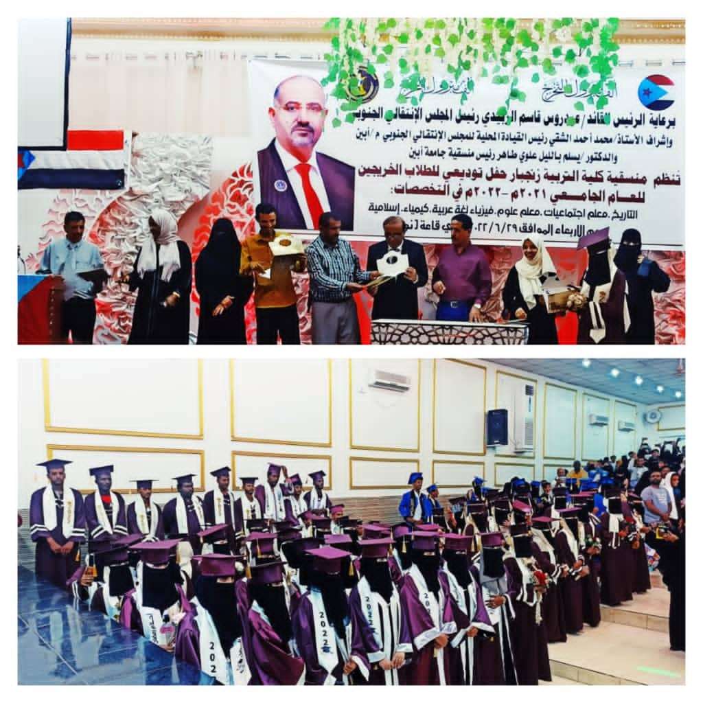 برعاية الرئيس عيدروس الزُبيدي..حفل توديعي لـ96 طالب وطالبة من كلية التربية زنجبار بجامعة ابين