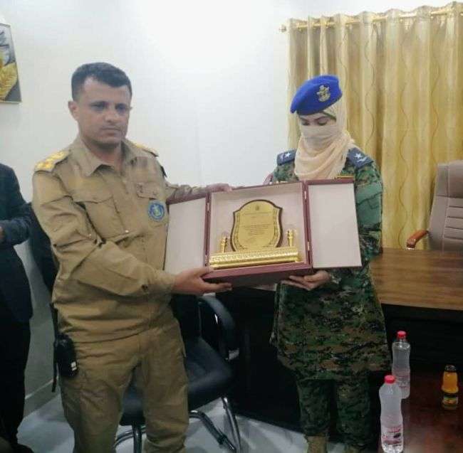 قائد اللواء السابع دعم وإسناد يُكرم الملازم أول طيار رحمة الحوشبي