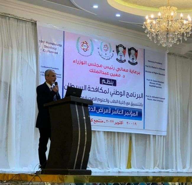 افتتح رئيس جامعة عدن الدكتور الخضر ناصر لصور ووكيل وزارة الصحة لقطاع السكان الدكتور سالم الشبحي بالعاصمة عدن المؤتمر العاشر لأمراض الدم والاورام . حيث بدأت اليوم الأربعاء 19 اكتوبر أولى فعاليات المؤتمر الذي ينظمه البرنامج الوطني لمكافحة السرطان بالتنسيق مع كلية الطب والعلوم الصحية بجامعة عدن ويشارك فيه 130 مشاركا من المحافظات المحررة سيقف على مدى يومين أمام ثلاثين ورقة علمية متصلة بالسرطان وأمراض الدم المختلفة منها سجلات الأمراض السرطانية على المستوى الوطني خلال خمس سنوات وأوراق تضمنت أنشطة مراكز الأورام الوطنية والرعاية التلطيفية لمرضى السرطان ومضاعفات مرض الدم وآثار العلاج الكيميائي في أمراض الغدة الدرقية وسرطانات المسالك البولية والوضع العالمي لسرطان الثدي وأوراق أخرى ذات صلة.