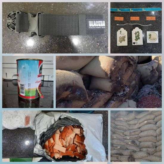 كما منعت دخول بطاقات بيان جاهزة (ليبلات ملابس متعددة الأشكال)، لمنع غش وخداع وتضليل المستهلك، إضافة لـ 3960 كرتونا من منتج فاصوليا حمراء (معلبة)، مخالفة للمواصفات لوجود صدأ بالعبوات، و2184 كيس فاصوليا لوجود أعفان.