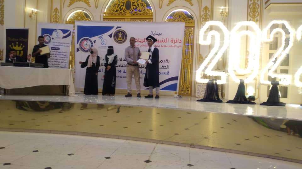 عدن _ خاص برعاية دائرة الشباب والرياضة في الأمانة العامة للمجلس الانتقالي الجنوبي يقيم معهد الأحقاف العالي للعلوم الطبية وذلك في العاصمة عدن اليوم الأربعاء 9 نوفمبر 2022 م الحفل التوديعي الختامي لطلاب معهد الأحقاف بتخرج الدفعة الرابعة عشر لخريجي قسم المختبرات ( دفعة مجهر الحياة ) للعام الدراسي 2021/ 2022 م، وذلك في قاعة سبأ بخور مكسر بحضور الأستاذ مؤمن السقاف مدير دائرة الشباب والرياضة بالمجلس الانتقالي وكذا الاستاذ جمال محسن الردفاني عضو دائرة الشباب وعمادة وإدارة وأساتذة المعهد وعدد من الضيوف واولياء أمور الطلاب الخريجين ومراسلي القنوات الفضائية والصحفيين وجمع غفير من الحاضرين . وأستهل الحفل بدخول الطلاب الخريجين والترحيب بالضيوف واولياء أمور الطلاب وبذكر من القرآن الكريم للقارئ الخريج محمد عمر وكذلك كلمات للدكتور محمد سعيد بامعيلا عميد المعهد ودائرة الشباب الرياضة في المجلس الانتقالي الجنوبي، حيث تخلل الحفل رقصات شعبية لفرقة سماء عدن ومشاركات غنائية للفنان معاذ الاصبحي وماجد باشماخ وعماد الكنزي وقصيدة للشاعر عبدالرحمن الحدي . وفي مسك الختام للحفل تم تكريم دائرة الشباب والرياضة بالأمانة العامة للانتقالي والداعمين للحفل من "شركات مؤسسات" ورجال أعمال وكذا اعضاء هيئة التدريس واعضاء اللجنة التحضيرية وكذا الطلاب الأوائل وتكريم جميع الخريجين بشهادات تقديرية من إدارة معهد الأحقاف .
