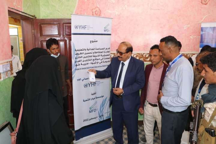 دشن وكيل محافظة شبوة أحمد الدغاري وبمعية مدير الوحدة التنفيذية للنازحين بالمحافظة ناصر الشكلية مشروع المرحلة الثالثة من الحوالات النقدية المخصصة لستمائة حالة من النازحين والمجتمع المضيف الأشد احتياجا بمديرية عتق. وخلال التدشين نوه الوكيل الدغاري بفوائد هذا المشروع للمستفيدين ،مؤكداً حاجتهم إليه بسبب تدهور الأوضاع الاقتصادية نتيجة حرب مليشيا الحوثي الانقلابية على البلاد،داعياً إلى توسيع نطاق الاستهداف وجلب المزيد من المساعدات للمحافظة. من جانبه أشار مدير الوحدة التنفيذية للنازخين ناصر الشكلية أن المشروع يأتي في إطار المساعدات الغذائية والتعليمية الطارئة وتحسين سبل العيش والممول من صندوق التمويل الإنساني لليمن (YHF). موضحاً أن قيمة المرحلة الواحدة من المشروع تبلغ ثمانية وأربعين مليون وتسعمائة وستين الف ريال ،منوهاً بتدخلات المشروع في القطاع التربوي وقيامه بالتوسعة في بناء ثمانية فصول دراسية بمدرستي البيحاني وثلاثين نوفمبر في مدينة عتق والمساهمة في توزيع الحقيبة المدرسية.