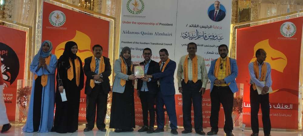 برعاية عيدروس الزبيدي رئيس المجلس الانتقالي الجنوبي ، وتحت شعار ( اتحدوا لمناهضة العنف ضد المرآة. نظم المجلس التنسيقي الاعلى لمنظمات المجتمع المدني اليوم بالعاصمة عدن ،حفل اختتام حملة ال16يوما لمناهضة العنف ضد المرأة وفي الحفل الذي بدأ بالقرآن الكريم، القى مستشار محافظ محافظة عدن ابو بكر احمدعلى كلمة المحافظة نقل في مستهلها تحيات معالي وزير الدولة محافظ العاصمة عدن الاستاذ / احمد حامد لملس للمشاركات في حفل اختتام الحملة المناهضة للعنف ضد المرأة ،واكد اهتمام قيادة السلطة المحلية بقضايا المرأة واعطائها الاولوية في الاهتمام وتبوء المناصب القيادية المختلفة . و القت الدكتورة نجوى فضل قاسم المدير العام التنفيذي لصندوق المعاقين رئيس مجلس ادارة المجلس التنسيقي لمنظمات المجتمع المدني كلمة اكدت نقلت من خلالها تحيات القائد عيدروس قاسم الزبيدي رئيس المجلس الانتقالي الى المشاركات والمشاركين في هذه الفعالية الخطابية والتكريمية التي ياتي انعقادها بعد 16 يوما من الحملة الوطنية والعالمية لمناهضة العنف ضد النساء ،مشيدة بما حققته الحملة من نجاحات كان لها الاثر الطيب في تعزيزدور المرأة ،لتمكينها من الحصول على كامل حقوقها السياسية والاقتصادية والمعيشية والاجتماعية ، واشارت الى الاشكاليات الكبيرة التي تتعرض لها المرأة من عنف اسري و تعسف وانتهاك لحقوقها في شتى مناحي الحياة خصوصا في الفترة الماضية اثناء وبعد فترة الحرب . واعلنت عن تضامنها مع ما تتعرض له المرأة اليمنية في المحافظات الشمالية الواقعة تحت سيطرة الانقلابيين ، من عنف في مختلف مناحي الحياة . ،وكانت الدكتورة انتصار خميس قد القت كلمة ترحيبية استعرضت فيها الانشطة التي صاحبت فعاليات ال16 يوما لمناهضة المرأة ، واهمية فعالية اليوم الختامي والذي يتضمن ،مسابقة ،القصة القصيرة ،والشعر والادب ،. كما القت أسماء الريمي كلمة استعرضت فيها ما تتعرض له المرأة من أشكال العنف والقوانين الدولية التي تحمي حقوقها . كما القيت قصيدة شعرية نالت الاستحسان . وتخلل فقرات الحفل الخطابي والتكريمي عرض فلم توثيقي لما تتعرض له المرأة من عنف للزميلة نائلة هاشم ،و عروضات لافلام صامتة ،واغان رائعة ومناسباتية بصوت الفنانة الشابة / منية فهيم . وفي ختام الحفل تم تكريم عدد من النساء والقيادات النسائية تقدير ا لدورهن المشهود في الدفاع عن حقوق المرأة في مختلف الظروف. كما تم تكريم الفائزين قي( مسابقات الرسم والشعر والقصة القصيرة )وكان من ابرز الفائزين / زياد محمد أحمد الذي فاز بالمركز الاول في القصة القصيرة . و اقيم على هامش الفعالية ، معرض للصور ضم في جنباته حوالي" 20" لوحة فنية معبرة عن مدى ما تتعرض له المرأة من عنف، بريشة عدد من المبدعات . كمااقيم بازار خير لمختلف الاكلات العدنية والكيك المحلي . حضر الفعالية عبدالكريم قاسم شايف مستشار وزير الدفاع وعصام وادي مدير الجمعيات وعدد من قيادات المجلس الانتقالي والقيادات النسوية وممثلي منظمات المجتمع المدني و وآخرون.