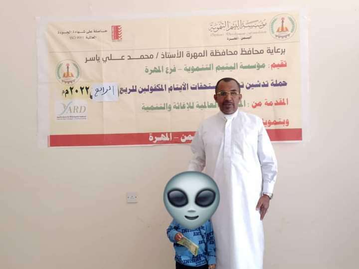 دشنت مؤسسة "اليتيم"التنموية بمحافظة المهرة، اليوم، توزيع مستحقات الأيتام للربع الرابع من العام الجاري والتي يستفيد منها خمسون يتيماً من منتسبي المؤسسة 2022م برعاية محافظ محافظة المهرة الأستاذ محمد علي ياسر وبإشراف مباشر من مكتب الشؤون الإجتماعية والعمل بالمحافظة وبدعم من المنظمة العالمية للإغاثة والتنمية وفاعل خير. وفي حفل التدشين ، عبر مدير المؤسسة التنفيذي الأستاذ عبدالله أحمد قويزان عن شكره للسلطة المحلية بالمحافظة وبالمديرية، ومكتب الشؤون الإجتماعية والعمل على تقديمهم كافة التسهيلات للمؤسسة ومنظمات المجتمع المدني لتنفيذ مجمل البرامج الخيرية والإنسانية والتنموية بالمحافظة. و وجه قويزان شكره لفاعل الخير والمنظمة العالمية للإغاثة والتنمية على تبنيهم مستحقات المستهدفين لربع الرابع من هذا العام ، داعياً فاعلين الخير ورؤوس الأموال إلى المساهمة و التبرع لتخفيف من أعباء الحياة التي يعيشونها شريحة الأيتام.
