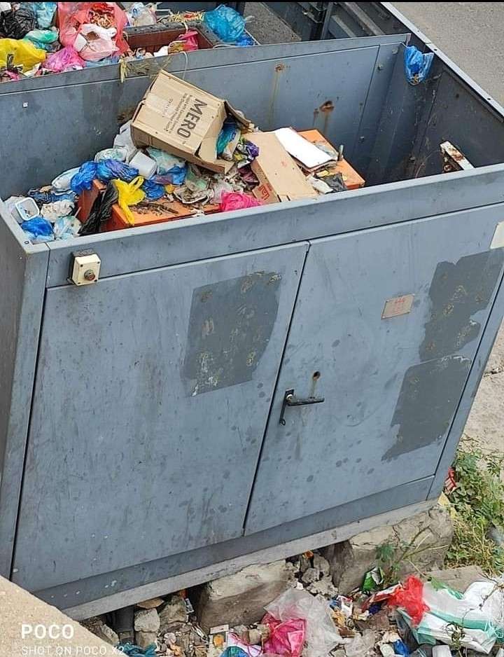 مولد كهرباء يتحول إلى برميل لجمع النفايات في تعز بعد نهبه وتشليحه.