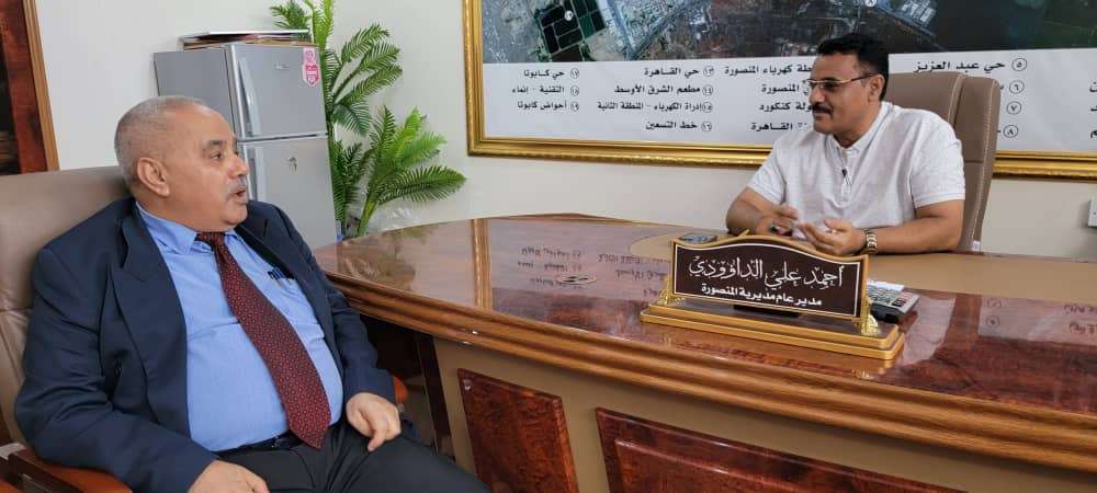 عقد لقاء في مبنى السلطة المحلية بمديرية المنصورة في العاصمة عدن، ضم مدير عام المديرية، أحمد علي الداؤودي، ومدير عام مكتب الصحة العامة والسكان بالعاصمة، الدكتور أحمد مثنى البيشي. وناقش اللقاء، كيفية تحسين أوضاع الخدمات الصحية بالمرافق الصحية والنهوض بالخدمات العلاجية المقدمة للمواطنين. واستعرض مدير عام المنصورة، أحمد الداؤودي، بعض الصعوبات التي تعاني منها المديرية في المجال الصحي، وكذا جهود قيادة السلطة المحلية في النهوض بمستوى الخدمات الصحية. فيما ثمن مدير عام مكتب الصحة العامة والسكان بعدن، الدكتور أحمد البيشي، دور قيادة مديرية المنصورة في الإرتقاء بالخدمات الصحية، مؤكداً استعداد قيادة مكتب الصحة العامة بالعاصمة إلى جانب جهود السلطة المحلية بالمديرية في تحسين الخدمات الطبية والعلاجية التي تقدمها المرافق الصحية للمرضى.