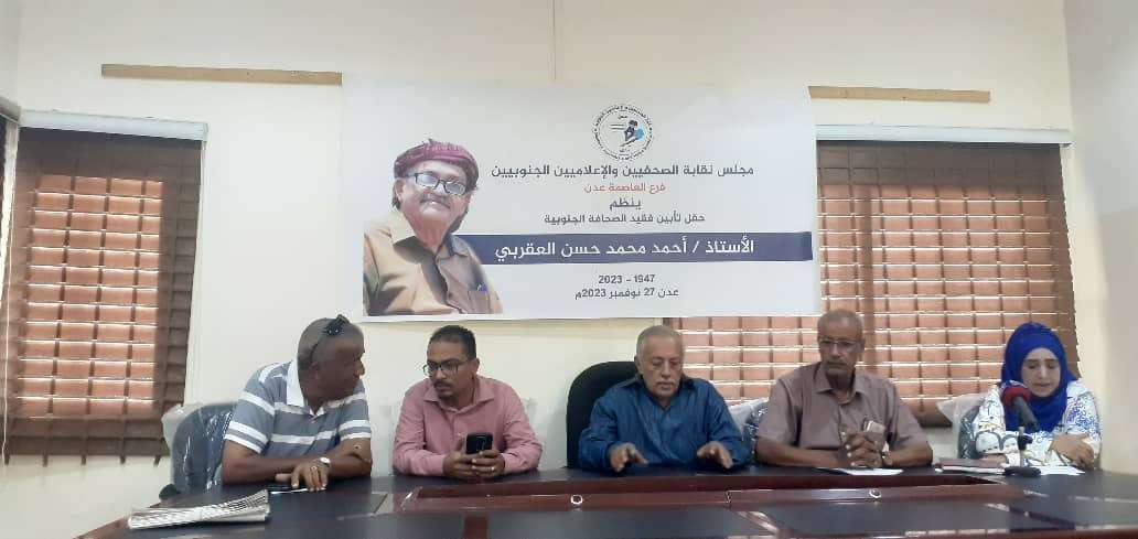 نقابة الصحفيين والإعلاميين الجنوبين بالعاصمة عدن تنظم حفل تأبيني لفقيد الصحافة أ. أحمد العقربي.