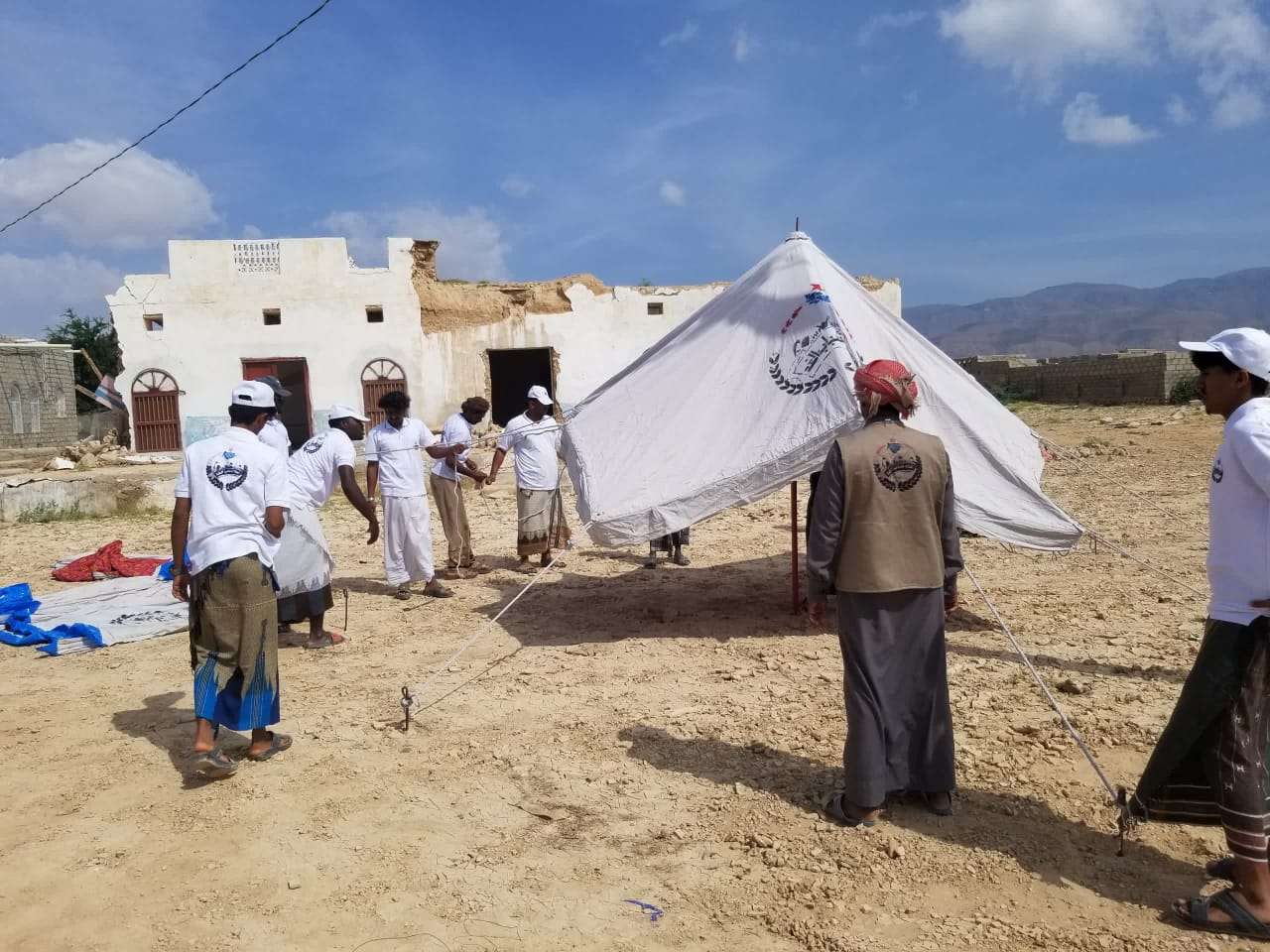 مكونة من 100 خيمة.. اتحاد شباب الغد بالمهرة يوزع خيام على المتضررين بحصوين.