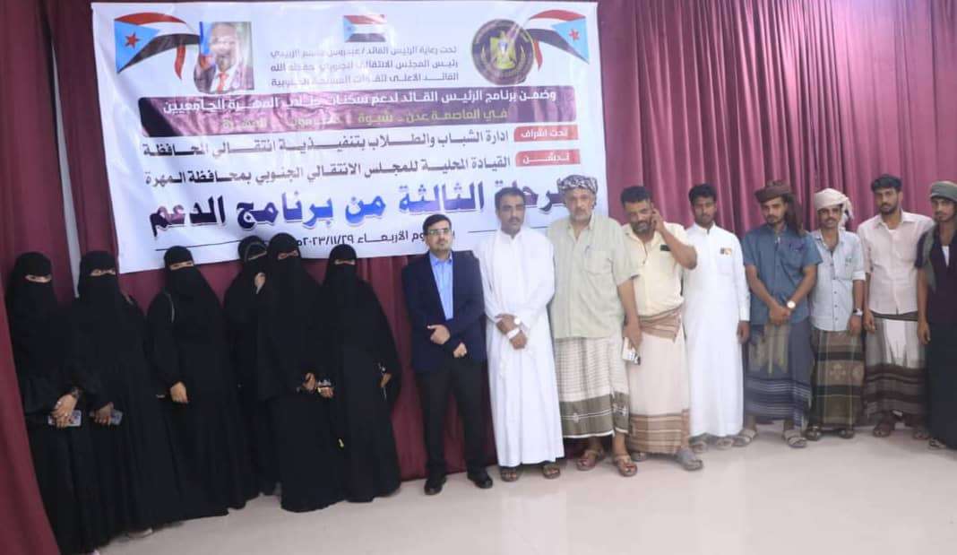 انتقالي المهرة يدشن المرحلة الثالثة من برنامج الرئيس الزُبيدي لدعم سكنات طلاب الجامعات.