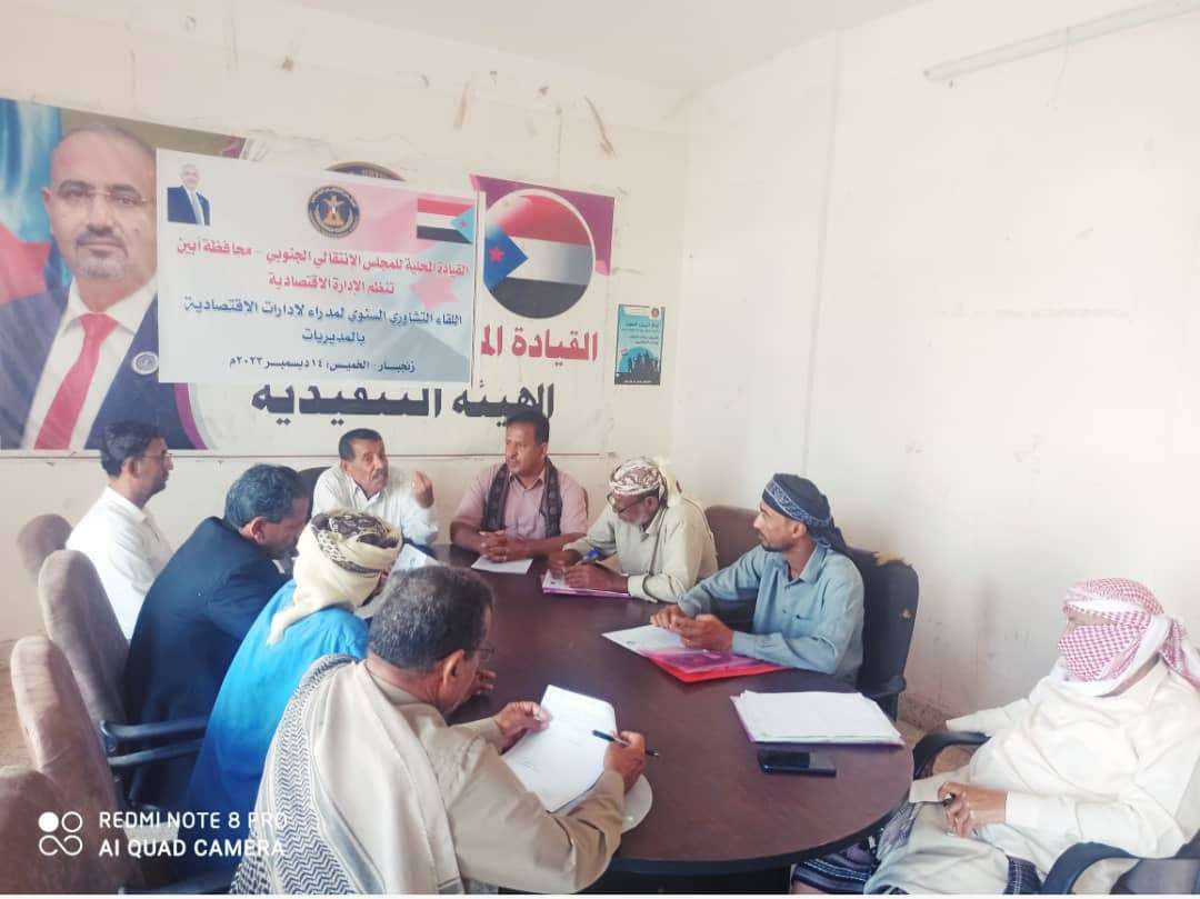 الإدارة الاقتصادية والخدمية بانتقالي أبين تعقد لقاءً تشاورياً لرؤساء الأقسام الاقتصادية في المديريات