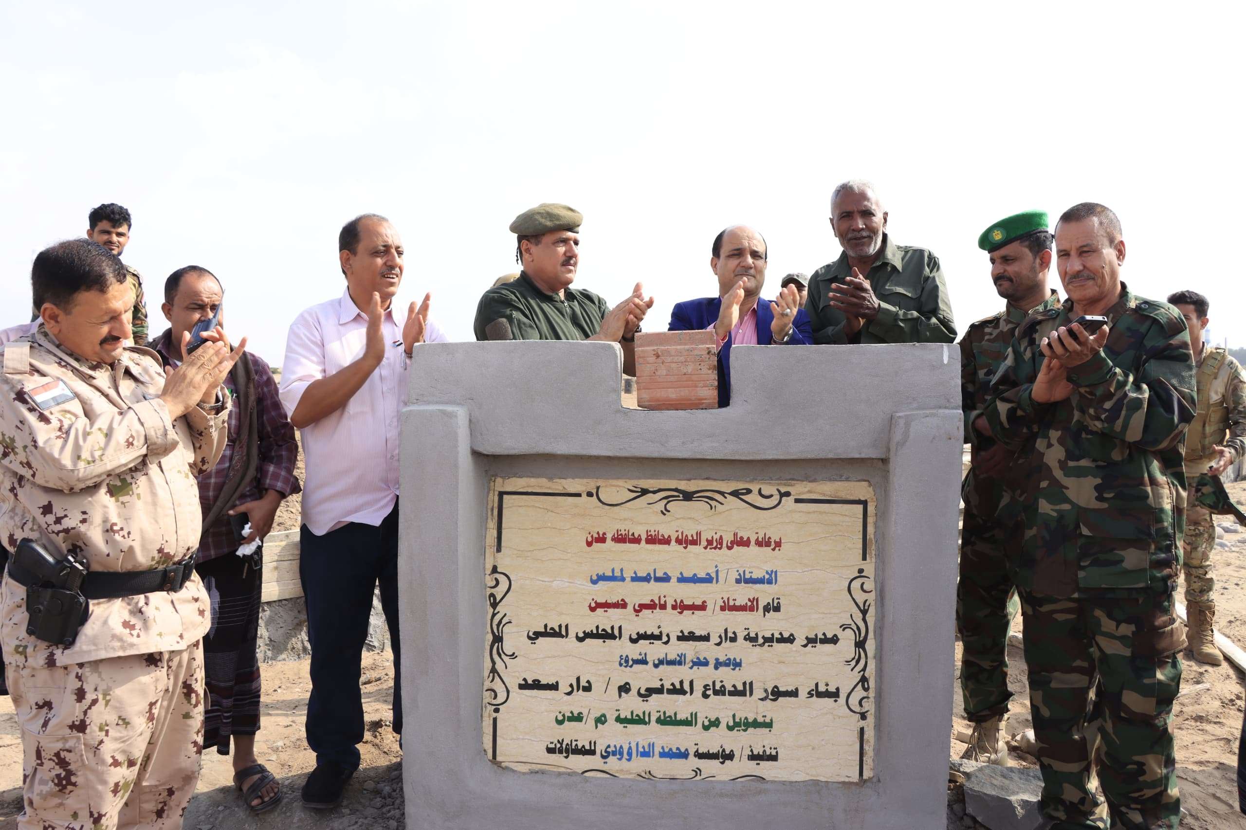برعاية وزير الدولة محافظ العاصمة عدن الأستاذ أحمد حامد لملس _ قام كل من مدير عام مديرية دار سعد الأستاذ عبود ناجي حسين ونائب مدير أمن عدن اللواء أبو بكر جبر ، في صباح اليوم الأحد الموافق 24 ديسمبر 2023م، بوضع حجر الأساس لمشروع مبنى الدفاع المدني، الواقع في منطقة العماد شرق المديرية، بكلفة إجمالية بلغت (55,641,000)، ريال بتمويل ذاتي من السلطة المحلية بمديرية دارسعد. كما قام مدير عام دارسعد ونائب مدير أمن شرطة العاصمة عدن، بزيارة لمركز شرطة العماد، والاطلاع على مشروع سور الشرطة الذي تم إنجازه خلال هذا العام، من قبل السلطة المحلية مديرية دار سعد والذي بلغت كلفته (31,430,000) ريال بتمويل ذاتي من السلطة المحلية بمديرية دارسعد. واثناء عملية الزيارة والتدشين، أشاد نائب مدير أمن عدن اللواء ابوبكر جبر، بالجهود الكبيرة التي تبذلها قيادة السلطة المحلية بمديرية دارسعد ممثلة بمدير عام المديرية الأستاذ عبود ناجي حسين، واسهاماته في تذليل الصعوبات وتلبية للمتطلبات الضرورية التي تحتاجها الأجهزة الأمنية في المديرية، وخير دليل على ذلك، فقد تكفلت السلطة المحلية بهذين المشروعين الكبيرين والتي بلغت تكلفته الإجمالية ما يقارب (87,071,000) ريال، على نفقة السلطة المحلية بمديرية دارسعد. رافقهم أثناء الزيارة كل من / العميد صالح سعيد الحازمي قائد المنقطة الأمنية السابعة والعقيد جلال علي يحيى رئيس اللجان المجتمعية والاستاذ احمد حسين بن عثيمان رئيس لجنة الخدمات وقادة الشرط وعدد مدراء المكاتب في المديرية.