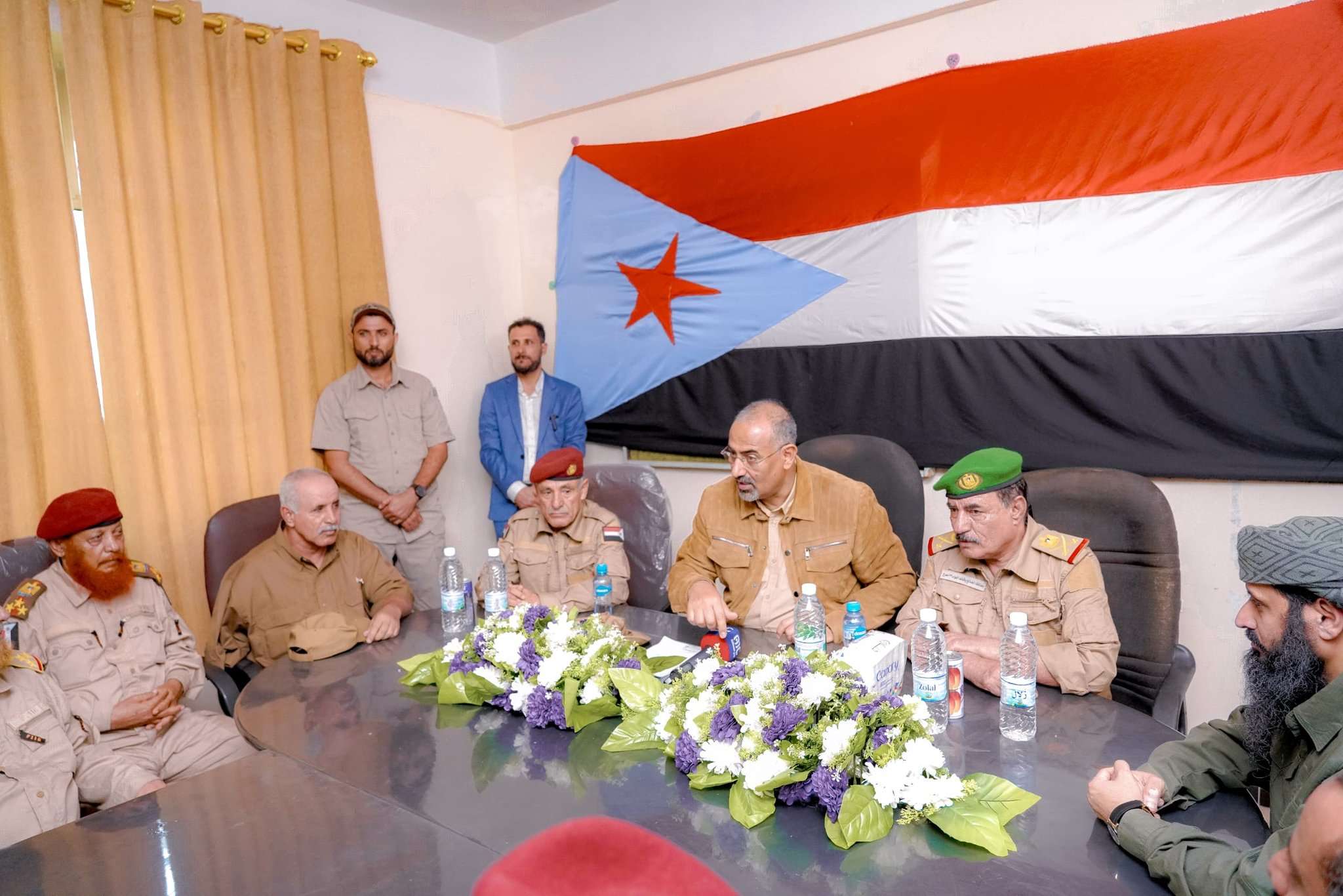 قام الرئيس القائد عيدروس قاسم الزُبيدي رئيس المجلس الانتقالي الجنوبي، نائب رئيس مجلس القيادة الرئاسي، اليوم الثلاثاء بزيارة تفقدية لمحافظة الضالع، كان في استقباله محافظ المحافظة قائد محور الضالع اللواء علي مقبل صالح، والعميد عبدالله مهدي سعيد رئيس الهيئة التنفيذية للقيادة المحلية للمجلس الانتقالي بالمحافظة، وحشد غفير من القيادات العسكرية والأمنية والوجهاء والأعيان. وحضر الرئيس الزُبيدي في مستهل زيارته، التي رافقه فيها عدد من أعضاء هيئة رئاسة المجلس الانتقالي اللقاء الموسع الذي نظمته الأمانة العامة لهيئة رئاسة المجلس الانتقالي للقيادات المحلية للمجلس في محافظة الضالع ومديرياتها والقيادات الأكاديمية وقطاعي الشباب والمرأة. وفي كلمة ألقاها خلال اللقاء، أكد الرئيس الزُبيدي على "أن تحقيق السلام في المنطقة مرهون بحل قضية الجنوب بما يحقق تطلعات شعبه في استعادة دولته كاملة السيادة"، مشيرا إلى أن العملية السياسية التي يقودها مبعوث الأمين العام للأمم المتحدة لن يُكتب لها النجاح ما لم تكن قضية شعب الجنوب في طليعة القضايا، وفي إطارها التفاوضي الخاص المتفق عليه. وتابع الرئيس القائد كلمته قائلا :"أقدامنا على أرضنا، وقضيتنا محمية بإرادة شعبنا وبسواعد أبطال قواتنا المسلحة، ولن يكتب لأي عملية سياسية دون حل قضية شعبنا حلاً عادلاً بما يرتضيه ويلبي تطلعاته". وشدد الرئيس الزُبيدي على أهمية الاصطفاف وتعزيز التلاحم الوطني الجنوبي، ونبذ الفرقة والوقوف في وجه مثيري الفتن والنعرات، مشيرا إلى أن الجنوب يمرُّ بمرحلة مصيرية تستدعي الثبات والشعور بالمسؤولية والعمل بروح الفريق الواحد للحفاظ على المكتسبات التي تحققت بفضل التضحيات الجسيمة التي قدمها آلاف الشهداء والجرحى. واستطرد الرئيس الزبيدي قائلا:" دماء شهدائنا وجرحانا غالية علينا، والنصر الذي تحقق دفعنا ثمنه شلالات من الدماء الزكية في معارك فقدنا فيها أعز رجالنا، واليوم علينا أن نستعد للقادم أكثر من استعدادنا لمعركة التحرير التي انطلقت من هذه المحافظة الصامدة". في الشأن التنظيمي، شدد الرئيس الزُبيدي على أهمية الارتقاء بعمل هيئات المجلس الانتقالي في عواصم المحافظات والمديريات، والالتحام بجماهير الشعب والقيام بدورهم في تلمّس أوضاع المواطنين ومساندة السلطات المحلية في أداء المهام الوطنية المُناطة بها. وفي إطار زيارته لمحافظة الضالع رأس الرئيس الزُبيدي اجتماعا ضم اللجنة الأمنية وقيادة محور الضالع القتالي بحضور قائد القوات البرية اللواء علي أحمد البيشي، وقائد قوات الحزام الأمني العميد محسن الوالي، حيّا في مستهله الصمود الأسطوري لأبطال قواتنا المُسلحة في جبهات المواجهة في عموم مناطق الجنوب. وشدد الرئيس القائد في حديثه مع القيادات الأمنية والعسكرية على أهمية وحدة القيادة والقرار العسكري، ورفع مستوى التنسيق بين الوحدات الأمنية والعسكرية، والاهتمام بجوانب التأهيل والتدريب والاهتمام بالمقاتلين وتلمّس أوضاعهم. كما أكد الرئيس القائد على أهمية أن تضطلع الوحدات الأمنية بدورها في تأمين الطرقات، ووقف أي جبايات غير قانونية، وعدم التهاون مع أي تصرفات تسيء للمواطن، واستشعار عِظم المسؤولية الوطنية الملقاة على عاتق كل قيادي وجندي. وخاطب الرئيس الزُبيدي الحاضرين قائلا :"النظام والقانون فوق الجميع، وعلى رجل الأمن أن يقوم بمهامه في حماية المواطن بمسؤولية، دعوا العدالة تأخذ مجراها، وليكن الجميع سندا لها، لكن إذ تم تجاوزها فابشروا بالفوضى والدمار".