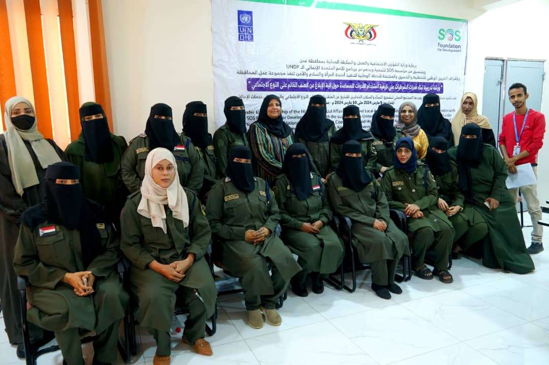 نظمت مجموعة عمل المحافظة في العاصمة عدن صباح اليوم ورشة تدريبية لبناء قدرات الشرطيات على كيفية استخدام الأدوات المساعدة حول آلية الإبلاغ عن العنف القائم على النوع الاجتماعي، ضمن نشاط حملة المناصرة التي يقودها المجتمع المحلي لتشجيع النساء والسكان المحليين للتبليغ عن العنف القائم على النوع الاجتماعي والوصول إلى خدمات الإحالة ويأتي ذلك برعاية من وزارة الشؤون الاجتماعية والعمل والسلطة المحلية بالعاصمة عدن، وبتنسيق من مؤسسة SOS للتنمية وبدعم من برنامج الأمم المتحدة الإنمائي الــ UNDP، وإشراف الفريق الوطني للتخطيط والتنسيق والمتابعة للخطة الوطنية لتنفيذ أجندة المرأة والسلام والأمن. حيث أقيمت الورشة في قاعة اتحاد نساء اليمن - عدن، واستمرت من (9 _ 10)مارس 2024 م، واستهدفت تدريب 16 شرطية. وتهدف الورشة التدريبية إلى زيادة وعي النساء والفتيات بشكل خاص والمجتمع المحلي بشكل عام حول كيفية الإبلاغ عن العنف القائم على النوع الاجتماعي وإرشادهم للوصول إلى مواقع مقدمي الخدمات من أقسام الشرطة أو مجمع صحي،أو منظمات مجتمع مدني، أو المنظمات الدولية، أو اللجان المجتمعية في المراكز في إطار المحافظة من خلال عمل الملصقات الخاصة بذلك. موضحاً في الوقت نفسه" أن الورشة التدريبية ستعزز من قدرات المرأة في التعامل مع هكذا قضايا حساسة لمواضيع العنف ومعرفة أسماء الجهات التي يجب التواصل معها لتوفير الحماية والتعامل معها عبر أرقام التواصل.