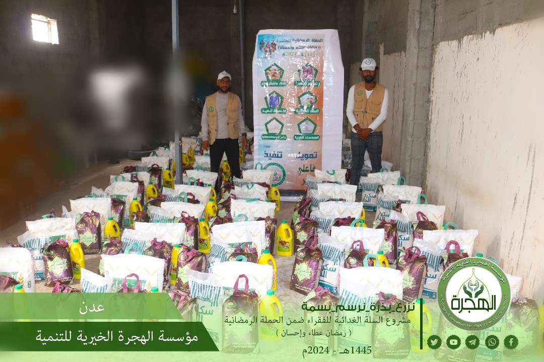 نفذت مؤسسة الهجرة الخيرية للتنمية وبتمويل من فاعلي خير ، توزيع مساعدات نقدية وسلال غذائية وملابس عيدية ومساعدات غذائية أخرى للأسر الفقيرة والأيتام والمرضى وذوي الاحتياجات الخاصة بالعاصمة عدن ولحج وأبين . حيث قام فريق المؤسسة بتوزيع المرحلة الثانية من المساعدات النقدية والتي تم في وقت سابق توزيع المرحلة الأولى ، وقد بلغ عدد المستفيدين في المرحلة الثانية 255 فرد من الأسر الفقيرة والأيتام والمرضى وذوي الإحتياجات الخاصة في مناطق ومديريات عدن ولحج وأبين . كما قامت المؤسسة بتوزيع 150 سلة غذائية تحتوي على الدقيق والأرز والسكر والزيت ، كما نفذت المؤسسة توزيع مساعدات غذائية أخرى والتي احتوت على المكرونة والتمر وعلب الخوخ لـ 200 أسرة ، وقامت مؤسسة الهجرة كذلك بتوزيع كسوة عيد الفطر والتي استفاد منها 164 طفل وطفلة ، وقد استهدفت المؤسسة بهذه السلال الغذائية والملابس العيدية والمساعدات الغذائية الأخرى الأسر الفقيرة والمحتاجة بمناطق ومديريات العاصمة عدن .
