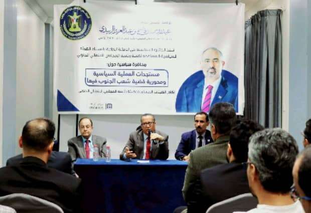أمانة الانتقالي العامة تُقيم محاضرة عن مستجدات العملية السياسية ومحورية قضية شعب الجنوب فيها