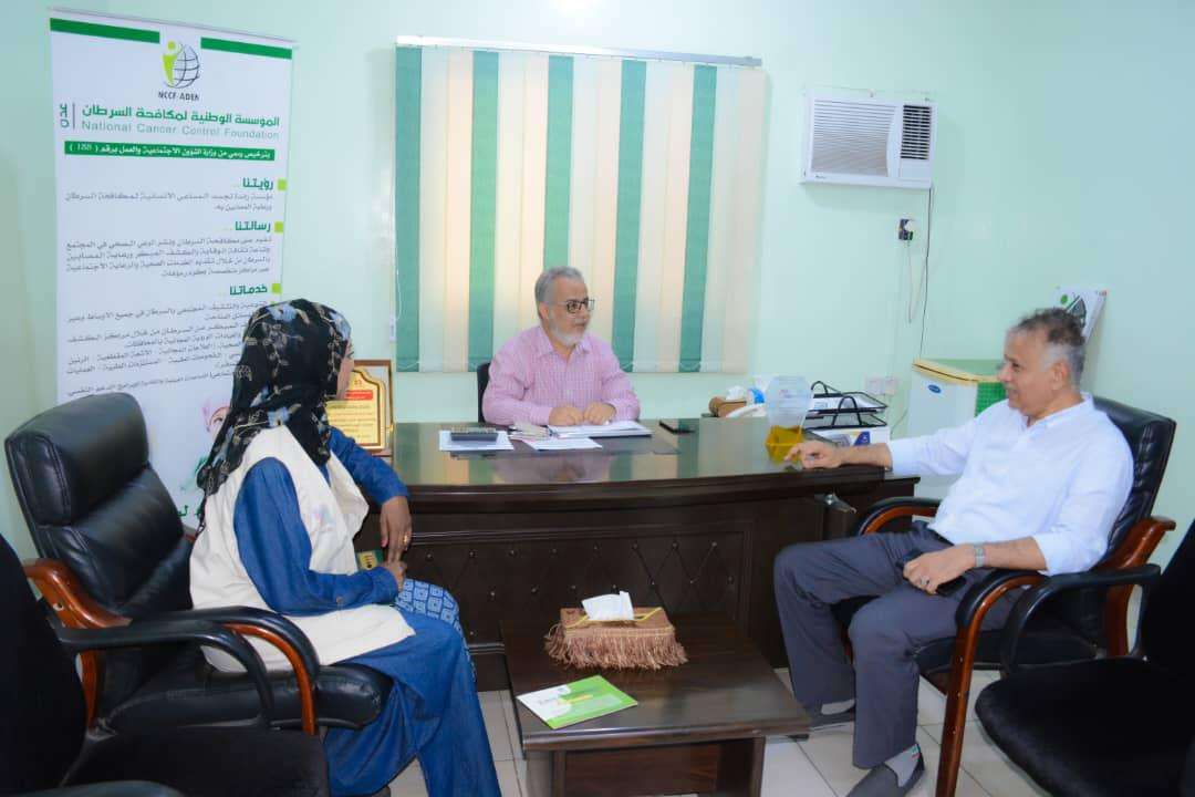 قام الأستاذ عبدالرحيم جاوي مدير عام مديرية المعلا بزيارة الي مقر المؤسسة الوطنية لمكافحة السرطان. والتقى مدير عام مديرية المعلا في الزيارة القائم بأعمال مدير المؤسسة الدكتور جمال مشرع،. كما اطلع الجاوي على الخدمات التي تقدمها المؤسسة ومركز الحياه للكشف المبكر عن السرطان مشيدا بالدور الإنساني الهام الذي تقوم فيه المؤسسة .