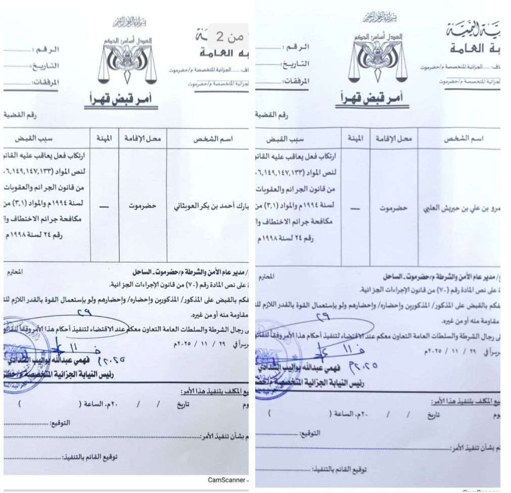 النيابة الجزائية تصدر أوامر قبض قهرية ضد عمرو بن حبريش والعوبثاني
