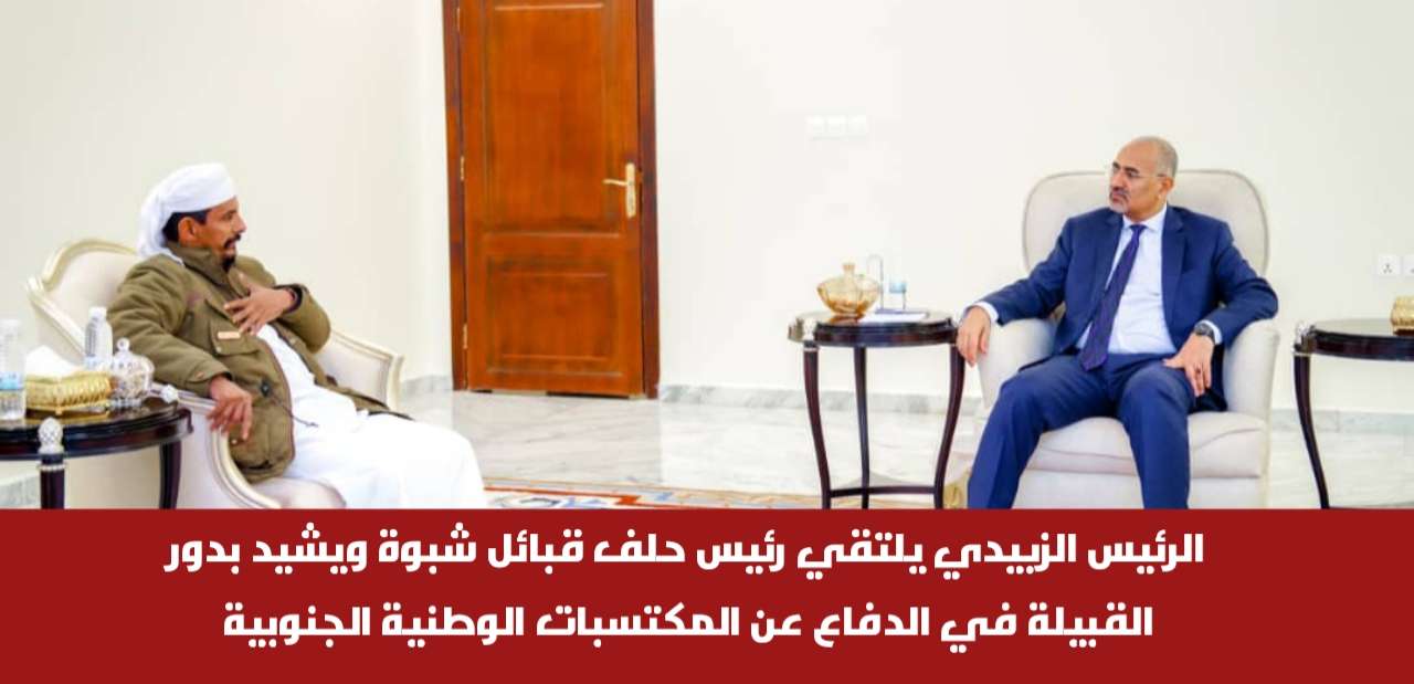 الرئيس الزبيدي يلتقي رئيس حلف قبائل شبوة ويشيد بدور القبيلة في الدفاع عن المكتسبات الوطنية الجنوبية