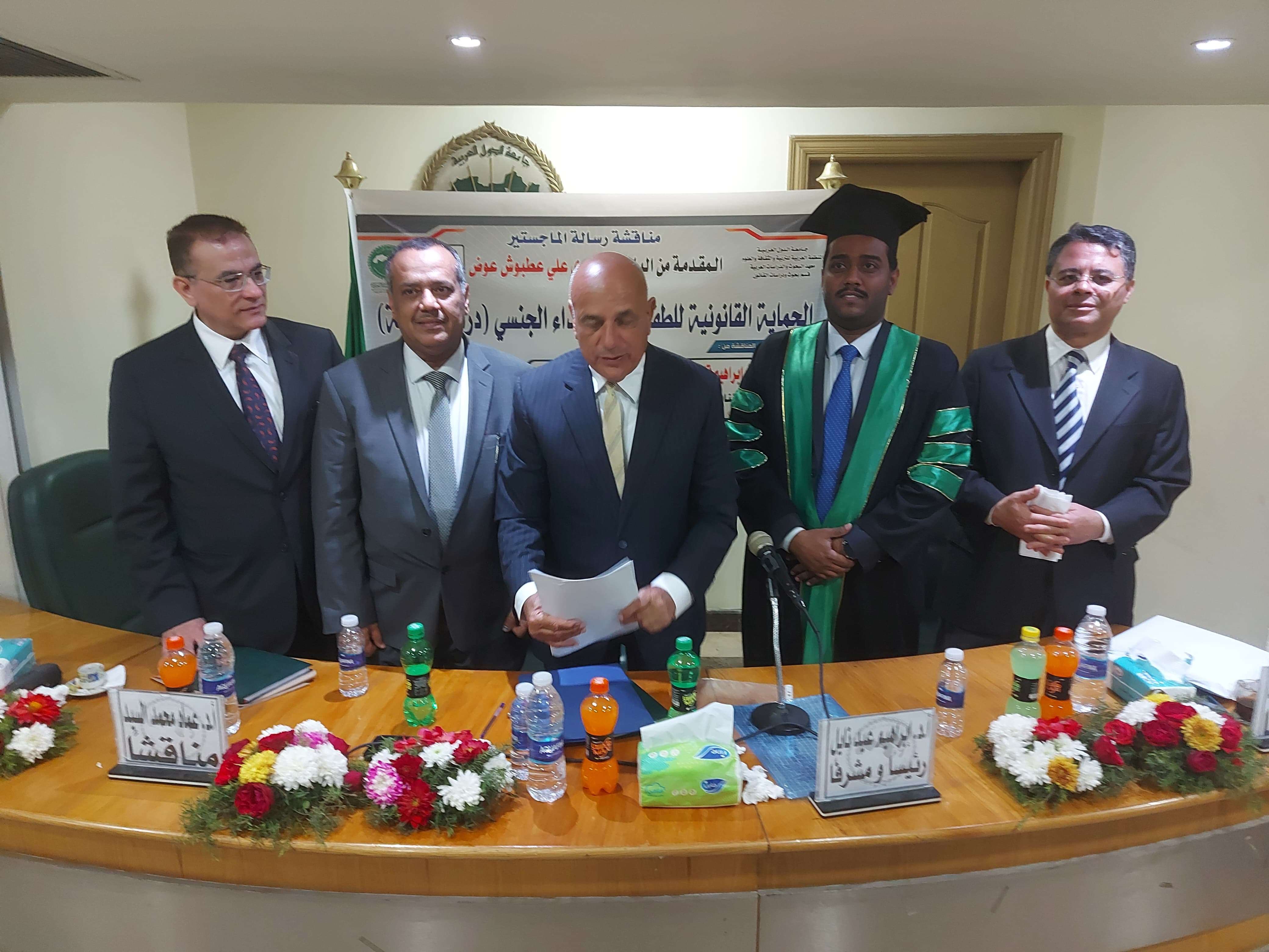 ​نال القاضي صبري علي عطبوش عوض درجة الماجستير بامتياز من معهد البحوث والدراسات العربية - قسم بحوث ودراسات القانون، وذلك عن رسالته العلمية الموسومة بـ "الحماية القانونية للطفل من الاعتداء الجنسي – دراسة مقارنة". ​قدمت الرسالة قراءة تحليلية ومعمقة للأطر القانونية، سواء على المستوى الوطني أو الدولي، المتعلقة بحماية الطفولة من جرائم الاعتداء الجنسي. واستخدم الباحث المنهج المقارن لتشريح التشريعات القائمة، مسلطاً الضوء على التحديات العملية وأوجه القصور في الجوانب التشريعية والتنفيذية.