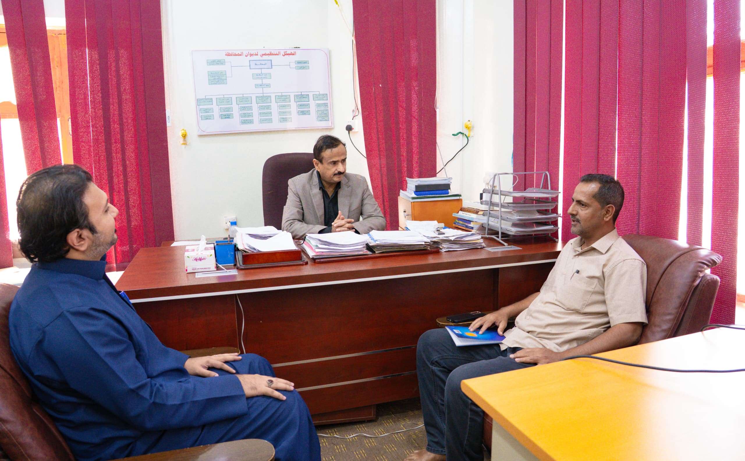مناقشة مستوى سير مشروع المساعدات الغذائية الطارئة بشبوة. والمحافظ شدد على توسيع نطاقه.