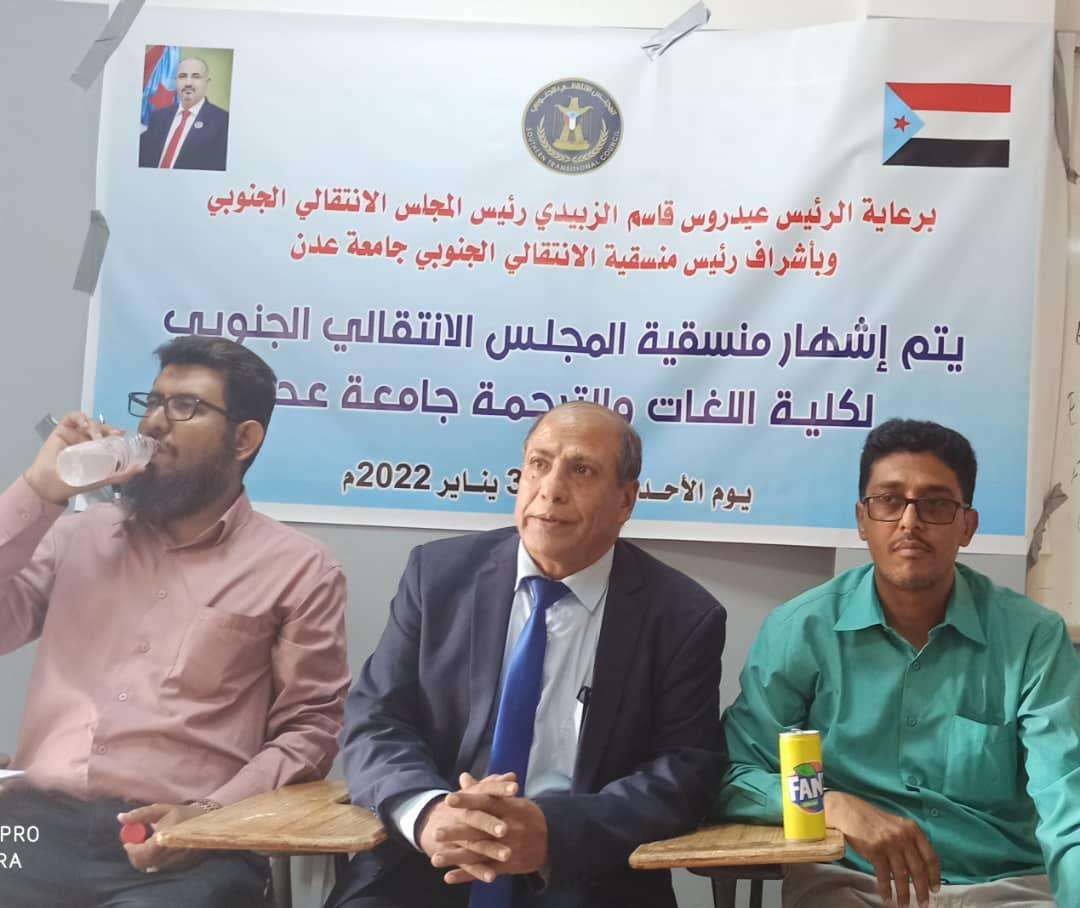 برعاية الرئيس الزُبيدي .. الإعلان عن تشكيل منسقية المجلس الانتقالي في كلية اللغات جامعة عدن.