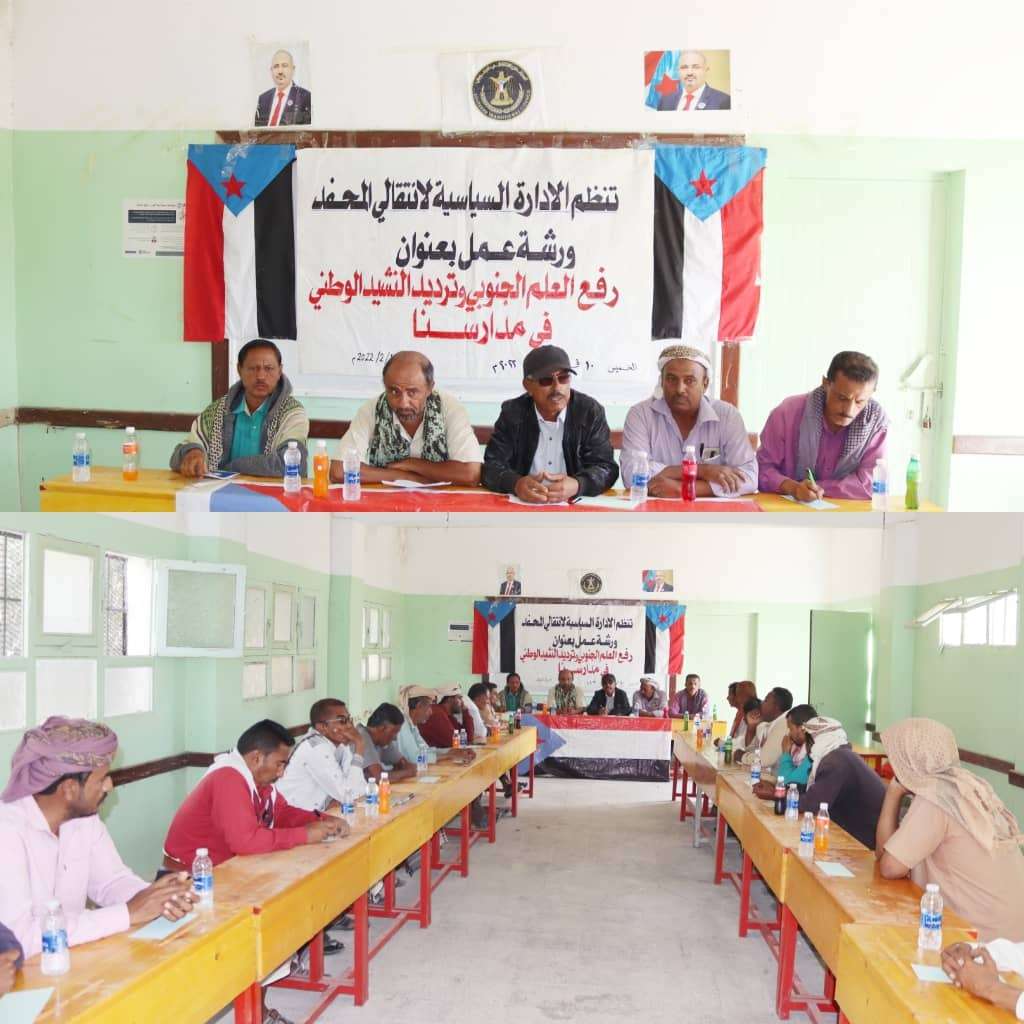 سياسية انتقالي المحفد بأبين تنظّم ورشة عمل بعنوان"رفع العلم الجنوبي وترديد النشيد الوطني في مدارسنا".