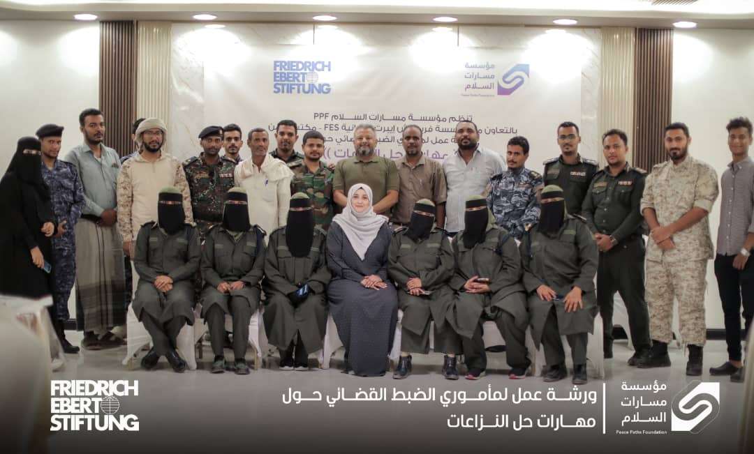 المكلا /خاص اختتمت صباح اليوم الورشة التدريبية لمأموري الضبط القضائي من ضباط الأمن وأعضاء النيابة الجزائية المتخصصة ، حول مهارات حل النزاعات الممول من مؤسسة فريدريش إيبرت الألمانية FES ، وتنفيذ مؤسسة مسارات السلام PPF و التي يشارك فيها 20 والتي استمرت ثلاثة أيام . وهدفت الورشة التدريبيه إلى أهمية تعزيز قدرات مأموري الضبط القضائي والتعامل مع القضايا وحل النزاعات وفق الأطر كيفية التعامل مع القضايا، وتعزيز الإرتباط الوثيق بين الأجهزة الأمنية والنيابات للحفاظ و التعاون والتنسيق المشترك و حل قضايا و حقوق المواطنين، إضافة إلى العمل على ادوات حل النازعات والمشاكل والتعامل معها وفق آليات حل النزاعات والسلام المجتمعي . وعبر مدير مكتب المشاريع الممثل غير المقيم للمنظمة الأستاذ " محمود قيّاح " على أن هذه الورشة تأتي ضمن أهداف مؤسسة فريدريش ايبرت في تعزيز مفاهيم حل النازعات وبناء السلام المجتمعي ، شاكرا جهود المشاركين وحرصهم وتفاعلهم الكبير في الورشة ، والعمل على تطبيق كل الأدوات والمفاهيم أثناء العمل وفق القانون لضمان تحقيق عملية التعايش والسلم المجتمعي بين كافة أفراد المجتمع وتعزيز التعاون المشترك مع وكلاء وأعضاء النيابات وفق الأطر القانونية السليمة ، مجددا شكره لمؤسسة مسارات السلام على تنفيذهم للورشة وتعاون إدارة أمن وشرطة ساحل حضرموت والنيابة الجزائية المتخصصة في انجاح الورشة . واختتمت الورشة بتكريم المشاركين بحضور المقدم علي عليان ممثل أمن ساحل حضرموت و مدير دائرة التوجيه المعنوي والقائم بأعمال مدير إدارة التدريب بساحل حضرموت والاستاذ عبيد واكد المدير التنفيذي لمؤسسة مسارات السلام PPF .