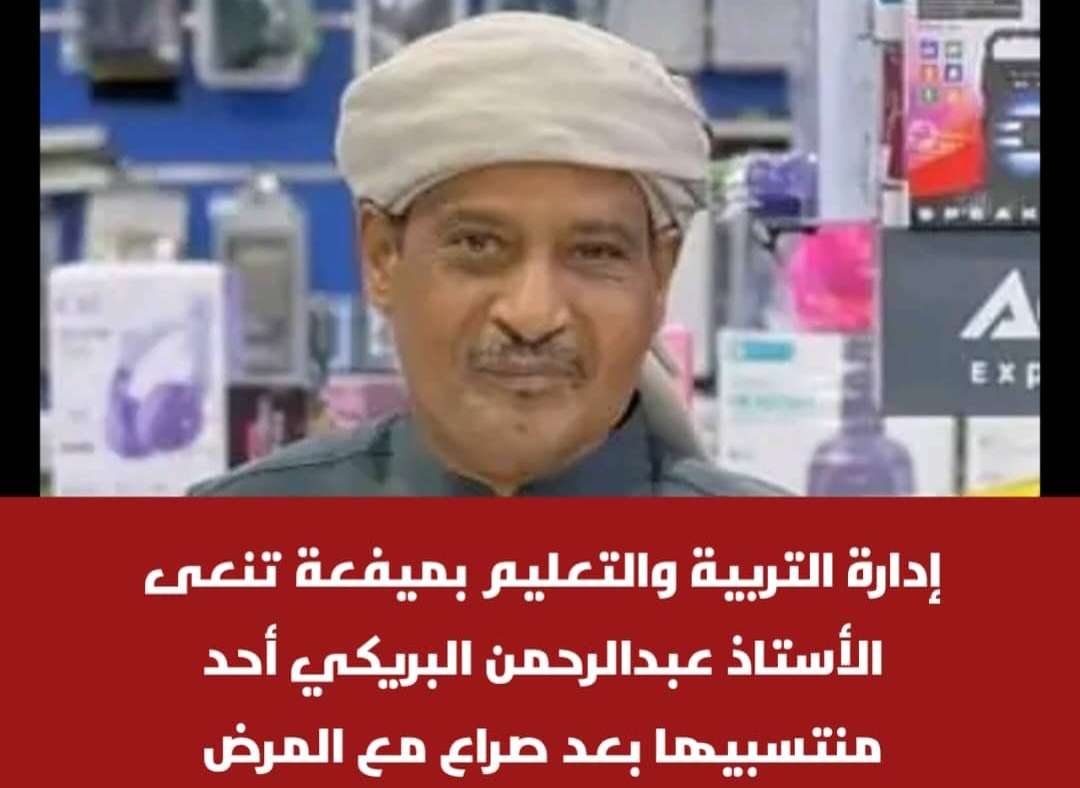 ادارة التربية والتعليم بمديرية ميفعة تنعي الاستاذ عبدالرحمن البريكي احد منتسبيها بعد صراع مع المرض