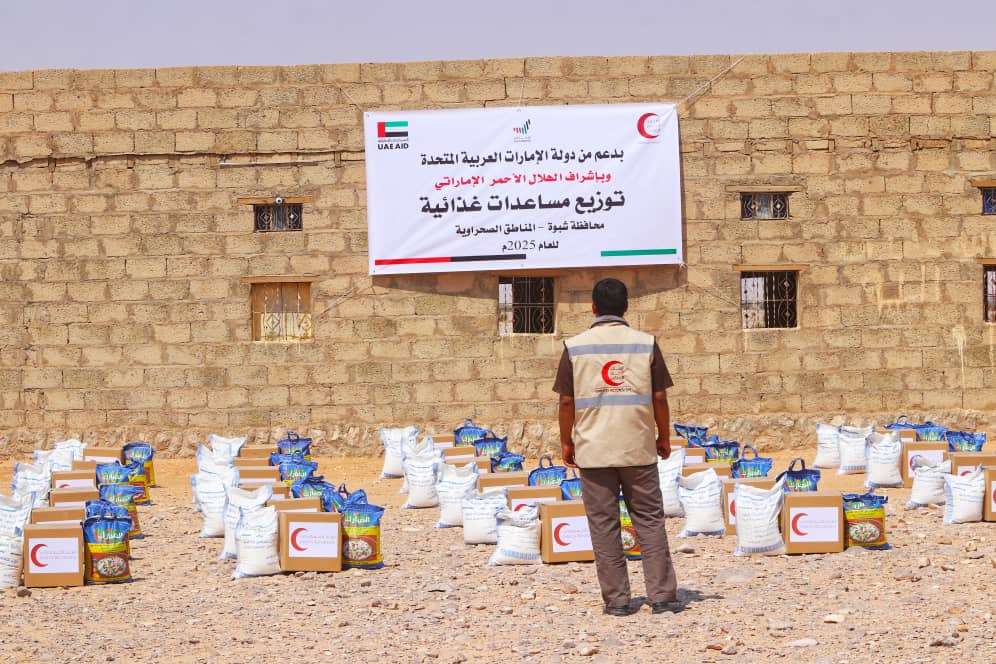 هلال الإمارات يوزع 36 طناً من المساعدات على بدو شبوة