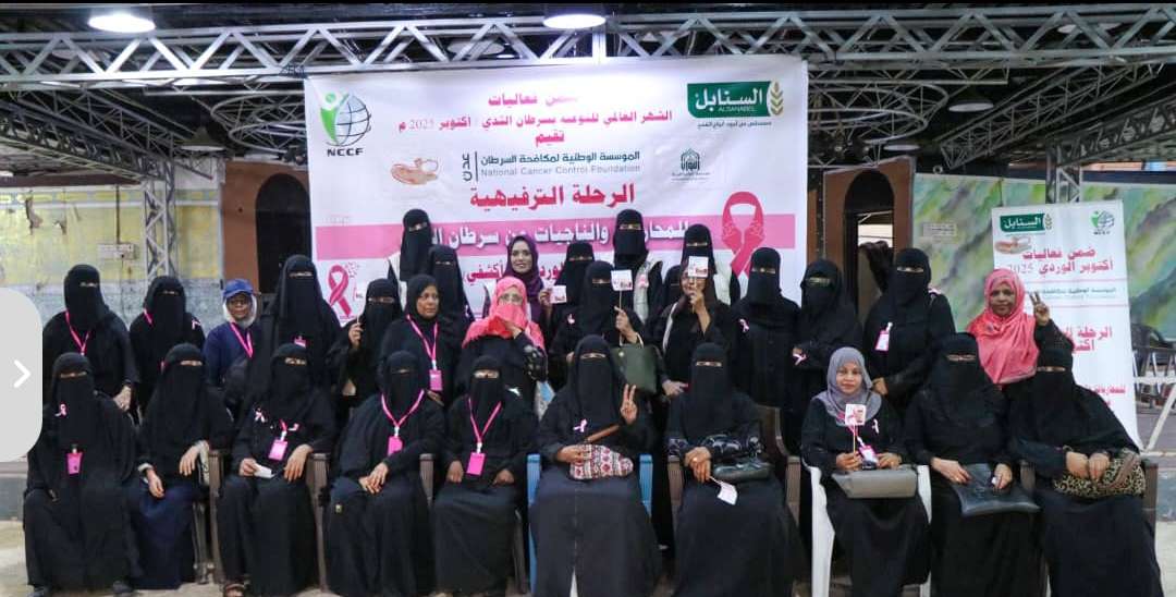 ضمن فعاليات الشهر العالمي للتوعية بسرطان الثدي.. المؤسسة الوطنية لمكافحة السرطان تنظم رحلة توعية ترفيهية لمحاربات السرطان بعدن