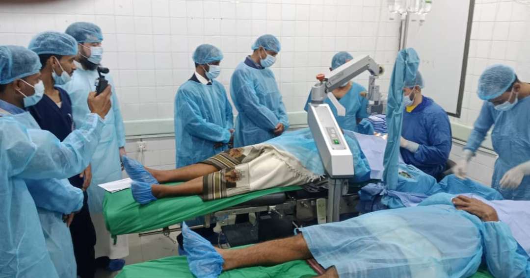 دشن محافظ شبوة الشيخ عوض ابن الوزير ، ، المخيم الطبي لامراض جراحة العيون بمستشفى شبوة العام للأمومة والطفولة، و الذي تنظمه ادارة المخيمات الطبية بوزارة الصحة والسكان ومكتبها بالمحافظة، وبالتنسيق مع وزارة التخطيط والتعاون الدولي ، بتمويل واشراف العون المباشر مكتب اليمن .ومساهمة مؤسسة نهد التنموية ، بمشاركة نخبة من الاستشاريين والأطباء المتخصصين من "مركز عيون الصحة" التخصصي . و رحب المحافظ بالمبادرة الطبية و الانسانية النبيلة لمؤسستي نهد والعون باقامة المخيم ، لافتا باهمية خدماته المجانية للمرضى، موجها مكتب الصحة العامة والسكان بتقديم كل التسهيلات لإنجاحه، وضمان استفادة أكبر شريحة من المرضى، مثمنا الدور الفاعل للكوادر الطبية والفنية المشاركة، وجهودها في إعادة الأمل والبصر لمئات الحالات التي كانت تعاني من أمراض العيون والإعاقة البصرية، مؤكدا دعم السلطة لكل المبادرات الانسانية التي تخدم حياة الناس و صحتهم في هذه المرحلة الصعبة. من جانبه اكد مدير صحة شبوة الدكتور علي الذيب، اهمية المخيم، الذي يضم كفاءات طبية متميزة في مجال طب العيون، لافتا بالتجهيزات التقنية الحديثة التي تعمل بها، و الكفيلة بتقديم أفضل الخدمات التشخيصية والعلاجية للمرضى، وباعلى المعايير العالمية لها. بدوره اكدا المدير التنفيذي لمؤسسة نهد ابراهيم بن ثابت ، ومدير مكتب العون بمحور حضرموت المهندس عدلي باسيف بان المخيم يهدف إلى تقديم خدمات طبية متقدمة تشمل إجراء العمليات الجراحية، لحوالي 537 مريض ، وفحص الحالات، وتوزيع الأدوية والنظارات مجانًا لهم.