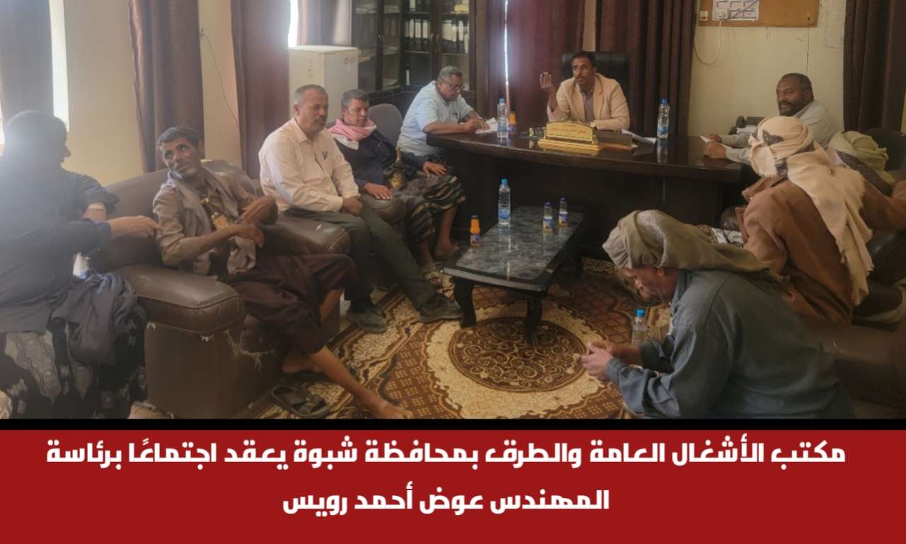 مكتب الأشغال العامة والطرق بمحافظة شبوة يعقد اجتماعًا برئاسة المهندس عوض أحمد رويس