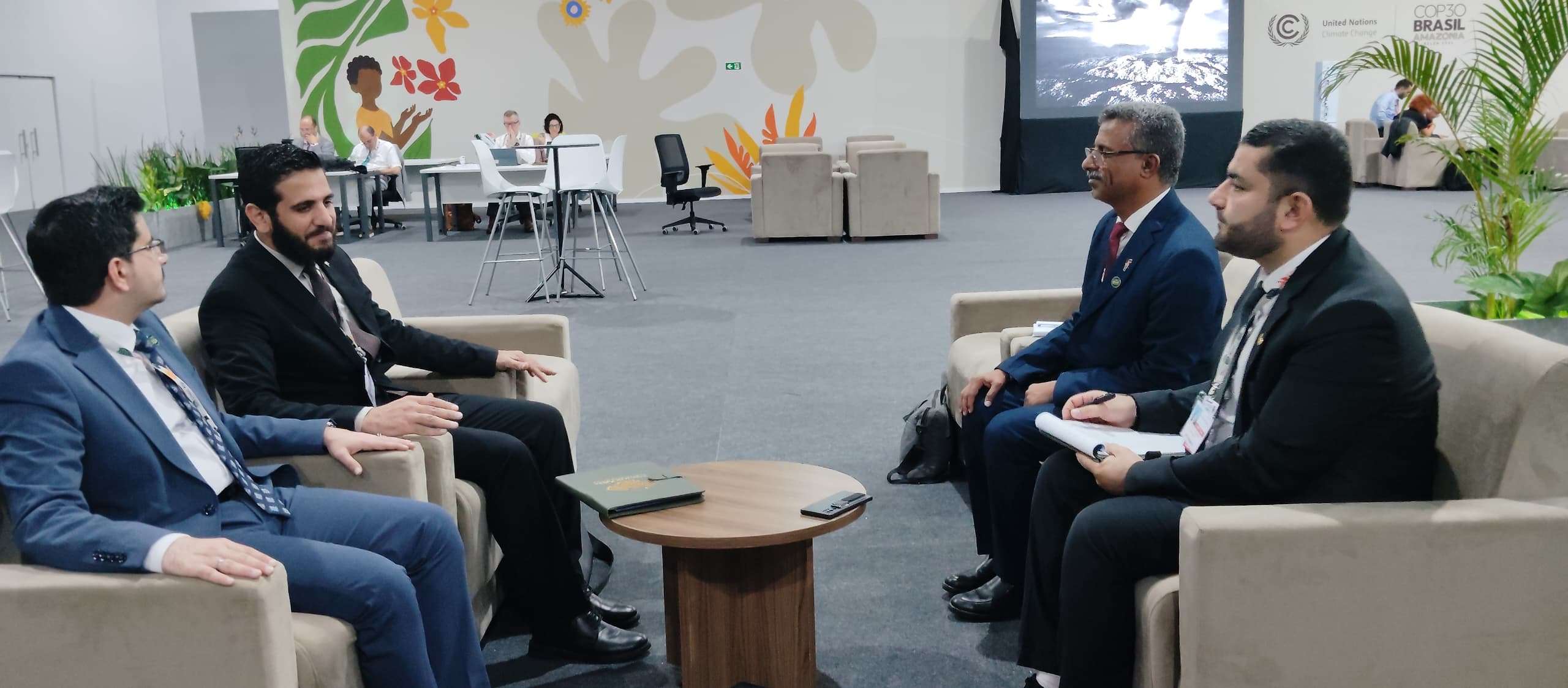 نائب وزير المياه والبيئة يلتقي رئيس الفريق السوري على هامش أعمال مؤتمر المناخ في البرازيل