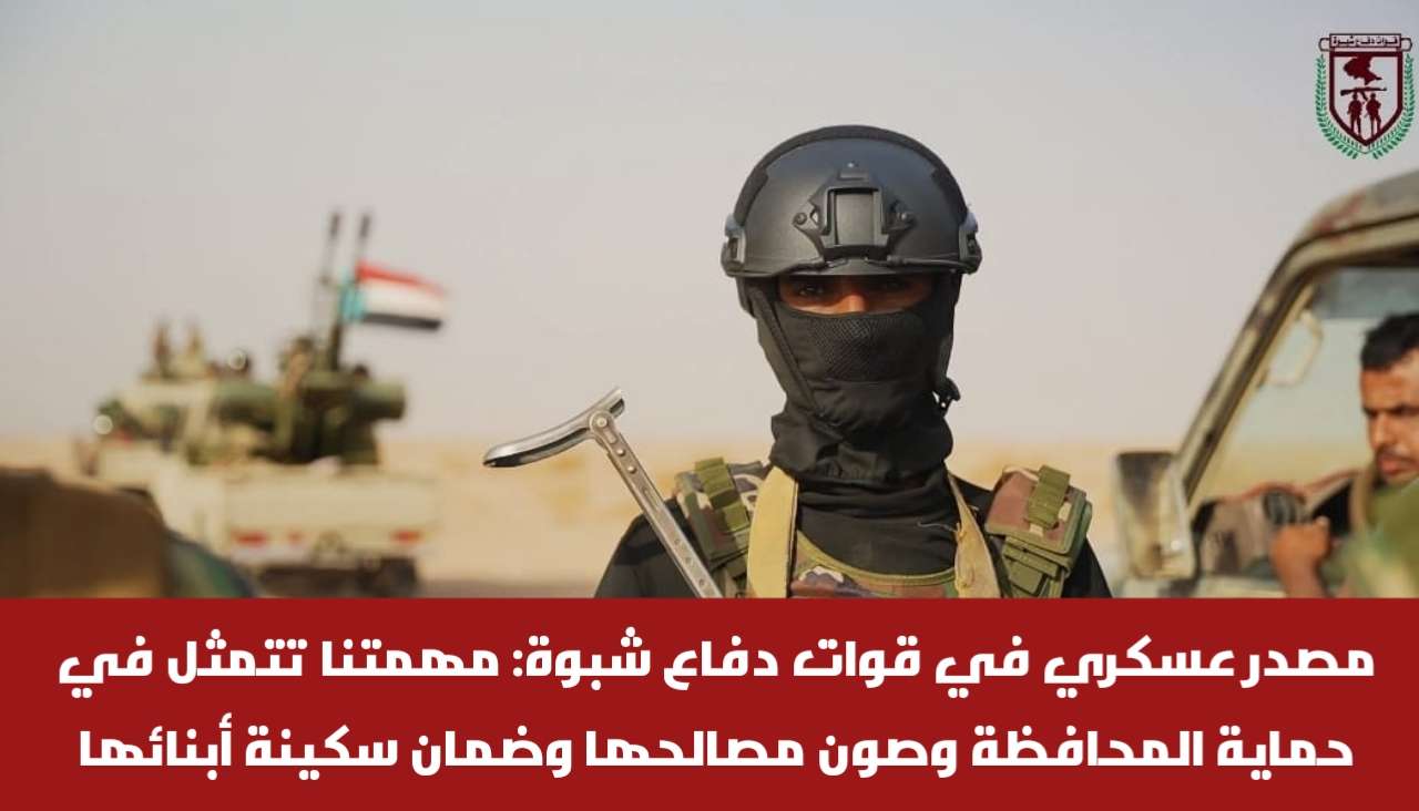 مصدر عسكري في قوات دفاع شبوة: مهمتنا تتمثل في حماية المحافظة وصون مصالحها وضمان سكينة أبنائها