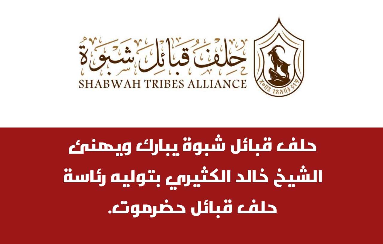 حلف قبائل شبوة يبارك ويهنئ الشيخ خالد الكثيري بتوليه رئاسة حلف قبائل حضرموت
