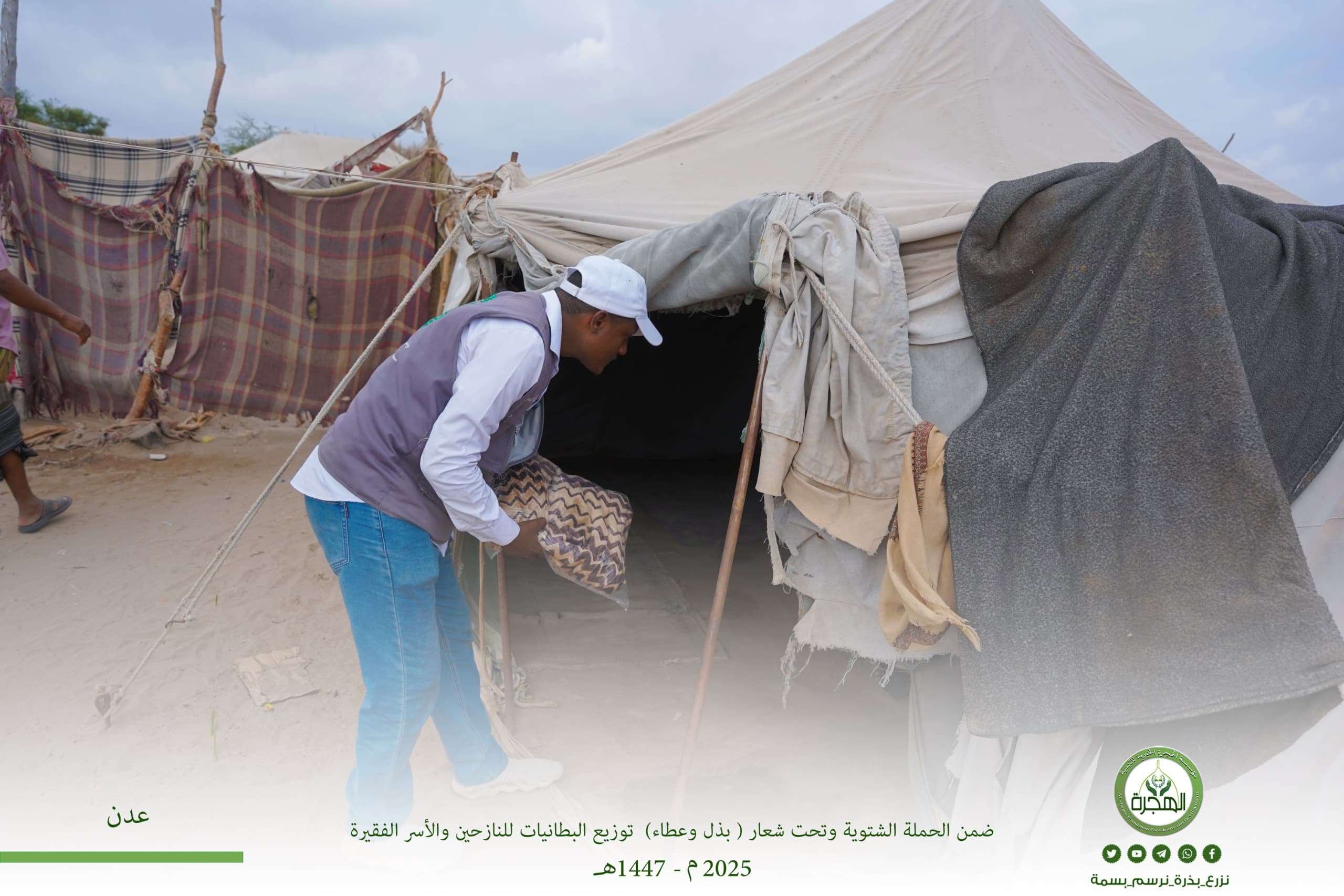 مؤسسة الهجرة توزّع البطانيات ضمن الحملة الشتوية (بذل وعطاء) للنازحين والأسر الفقيرة في العاصمة عدن