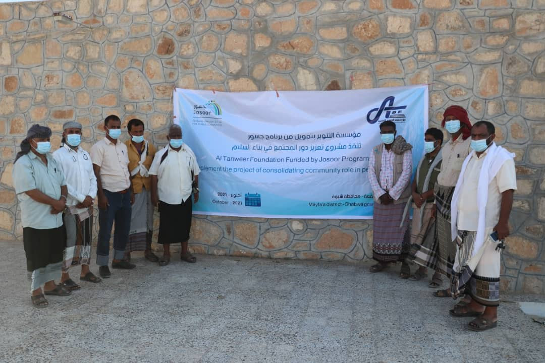 مؤسسة التنوير بتمويل من برنامج جسور تنفذ مشروع تعزيز دور المجتمع في بناء السلام بمديريتي عتق وميفعة بشبوة