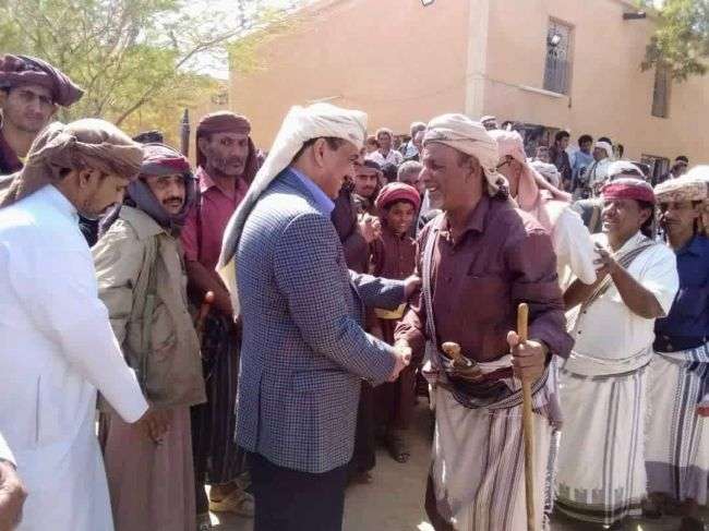 توافد المئات من أبناء وشيوخ ووجهاء القبائل والمواطنين إلى مديرية نصاب، اليوم الجمعة، للترحيب بالشيخ عوض محمد بن الوزير العولقي، سلطان العوالق .