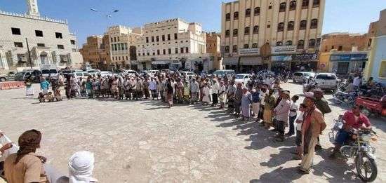 احتج عشرات المواطنين اليوم الاثنين، في ساحة قصر الرناد بمدينة تريم في وادي حضرموت، على انهيار الواقع المعيشي.