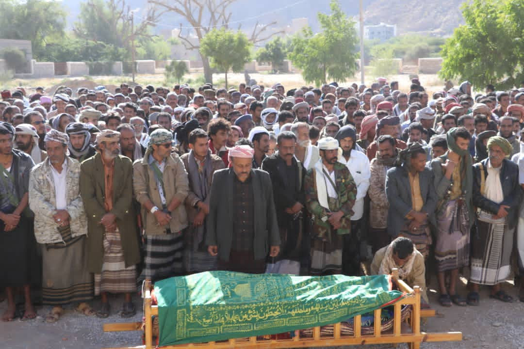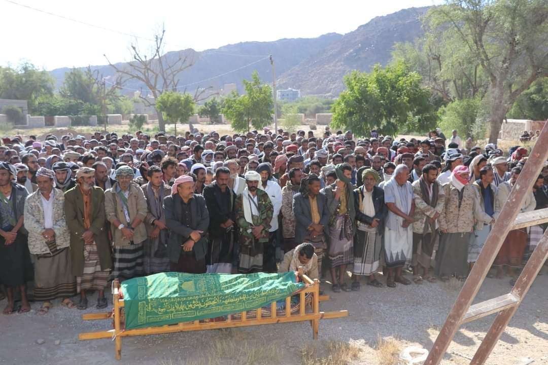 بحضور رئيس انتقالي شبوة ..أبناء مديرية الصعيد يشيعون جثمان الشهيد أبوبكر العولقي .....