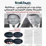 صحيفة سعودية : بيان بن دغر _جباري يمثل مطالبة صريحة بعزل الرئيس هادي لتحقيق أهداف شخصية وصف عدد من المراقبين للشأن اليمني البيان المشترك الذي أصدره رئيس مجلس الشورى – رئيس الحكومة ال...