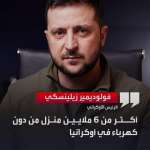 الرئيس الأوكراني زيلينسكي : أكثر من 6 ملايين منزل من دون كهرباء في بلاده صرح الرئيس الأوكراني زيلينسكي ان أكثر من 6 ملايين منزل من دون كهرباء في بلاده بعد ان تم ضرب البنية ا...