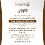 حلف قبائل شبوة يدعو لحضور ندوة توعوية حول مخاطر الثأر وتأثيراته السلبية شبوة - إعلام الحلف دعا حلف قبائل شبوة برئاسة الشيخ فارس الخيلي كافة أبناء المحافظة لحضور الندوة التو...