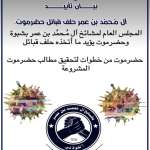 المجلس العام لمشائخ آل مُـحمُد بن عمر بشبوة وحضرموت يؤيد ما أتخذه حلف قبائل حضرموت من خطوات لتحقيق مطالب حضرموت المشروعة إعلام : المجلس العام أيد المجلس العام لجميع مشيخات آل مُـحمُد بن عمر قاطبة في محافظة شبوة وحضرموت وا...