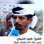 الشيخ فارس الخبيلي : رئيس حلف أبناء وقبائل شبوة يشيد بدعم التحالف العربي أشاد الشيخ فارس ناصر المشيعي بلعبيد رئيس حلف أبناء وقبائل شبوة بدعم دول التحالف العربي ممثلة في المم...