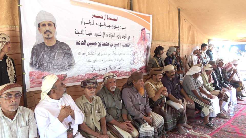 أقيم اليوم في بلدة جول بن حيدر بمديرية جردان بمحافظة شبوة مراسيم العزاء في وفاة منصب السادة آل حيدر المغفور له باذن الله السيد سالم بن حسين الحامد والذي وافاه الاجل في العشرين من شهر رمضان المبارك بدولة الامارات العربية المتحدة , والاحتفال بتنصيب السيد علي بن محمد بن حسين الحامد خلفا له بحضور رسميا وشعبيا كبيرا توافدت خلاله مواكب معظم قبائل محافظتي شبوة وحضرموت وهم يرددون الزوامل الشعبية التي تشتهر بها المحافظتين الزاخرة بموروثها الشعبي والشعري العريق والمعروف في مثل هذه المحافل , معبرين بأساليبهم الشعرية الجميلة عن عميق حزنهم لرحيل المنصب الفاضل السيد سالم بن حسين الحامد , مهنئين بتنصيب السيد علي بن محمد الحامد خلفا له ومنصبا على السادة آل حيدر . وأشاد العديد من الشعراء في قصائدهم بالمناقب الأخلاقية للمنصب السلف والمنصب الخلف واصالة وعراقة نسبهم الشريف . وخلال الحفل الذي حضره رئيس المكتب السياسي بمحافظة شبوة وعضو محلي المحافظة الشيخ احمد بن ضباب والنائب الاكاديمي لجامعة شبوة الدكتور خالد بن سريع و الشاعر المستشار خالد بن فهيد ومدراء عموم مديريات عتق الشيخ علي عامر , وحبان محمد مشفر , وجردان احمد بن عاطف والعديد من مراجع القبائل والشخصيات الاجتماعية والوجهاء والاعيان بمحافظتي شبوة وحضرموت وفي طليعتهم المرجع القبلي المعروف الشيخ محسن القديمة القيت كلمة عن المنصب الجديد لسادة آل حيدر رحب فيها المنصب محمد بن علي الحامد بالحاضرين جميعا , مثمنا عاليا تجشمهم متاعب السفر والطريق من اجل مؤاساتهم في رحيل فقيدهم الغالي الحبيب المنصب سالم بن حسين الحامد , وتشريفهم لحفل تنصيبه خلفا له , مؤكد السير على درب المرحوم الفقيد والعمل على خدمة المجتمع وتعزيز روابط نسيجه الاجتماعي والحفاظ على علاقات الاخوة والرحم والتواصل مع كافة القبائل .